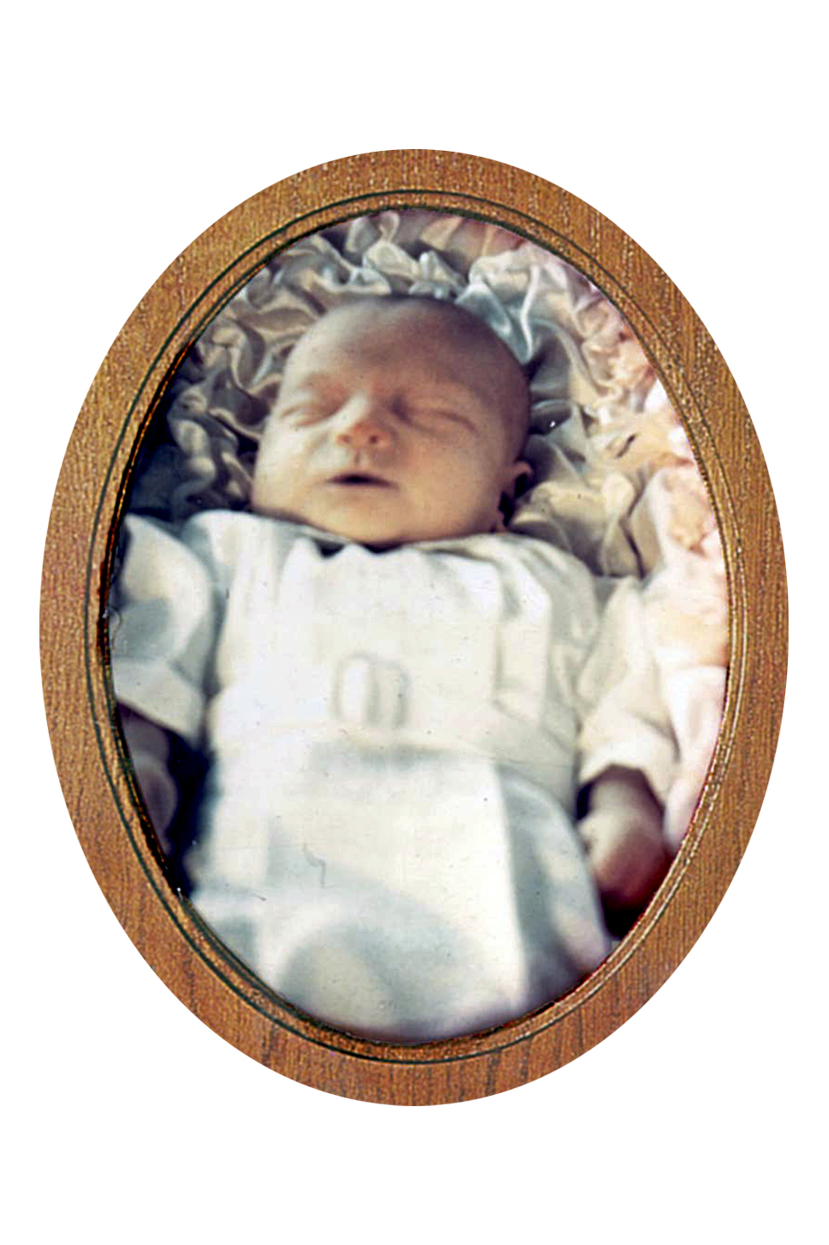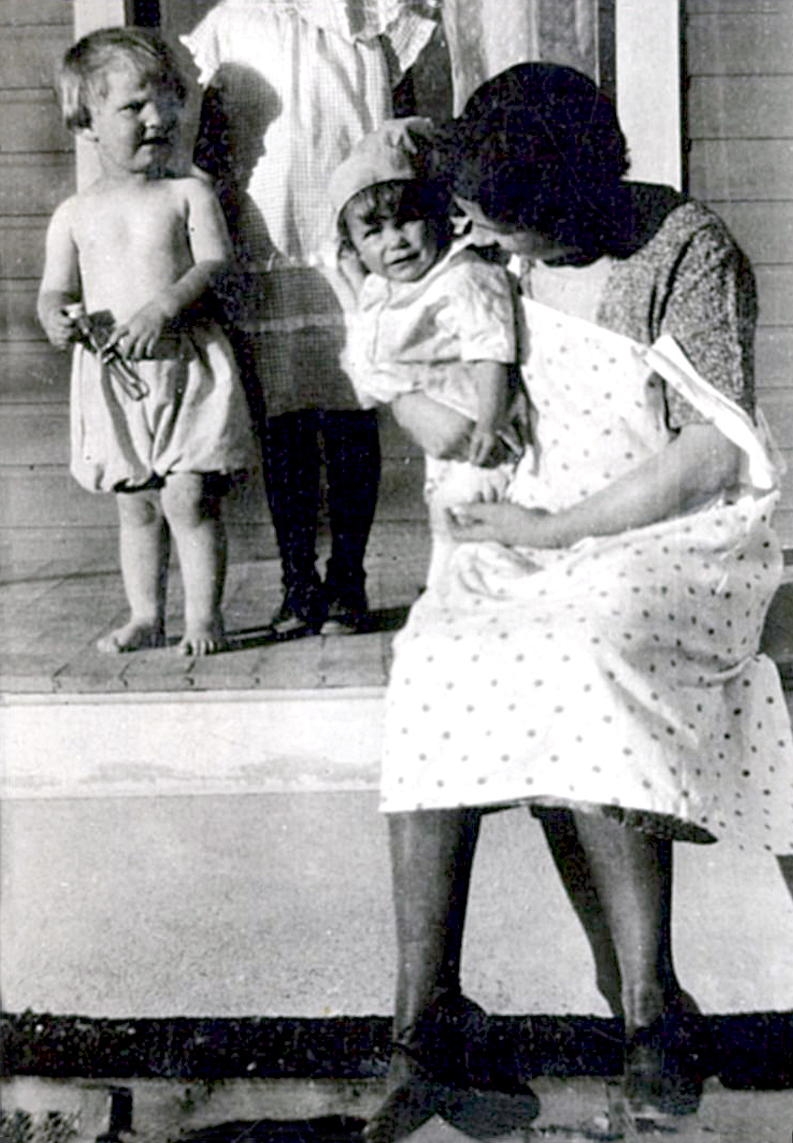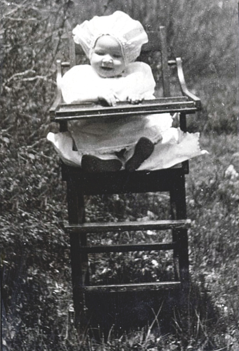 Delora as a baby with wagon in background