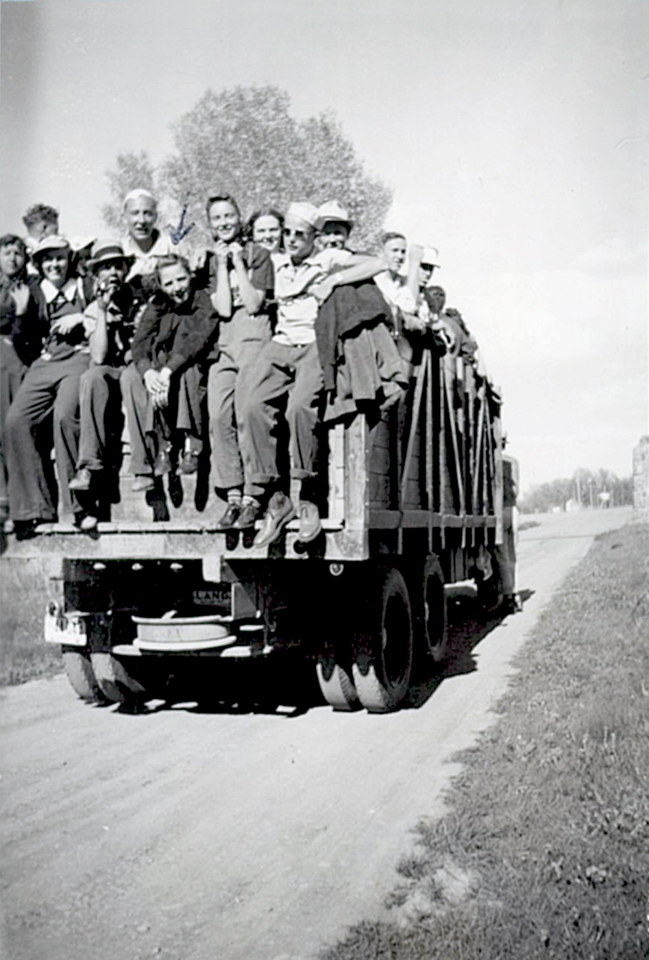Delora in a wagon full of hay with her brothers