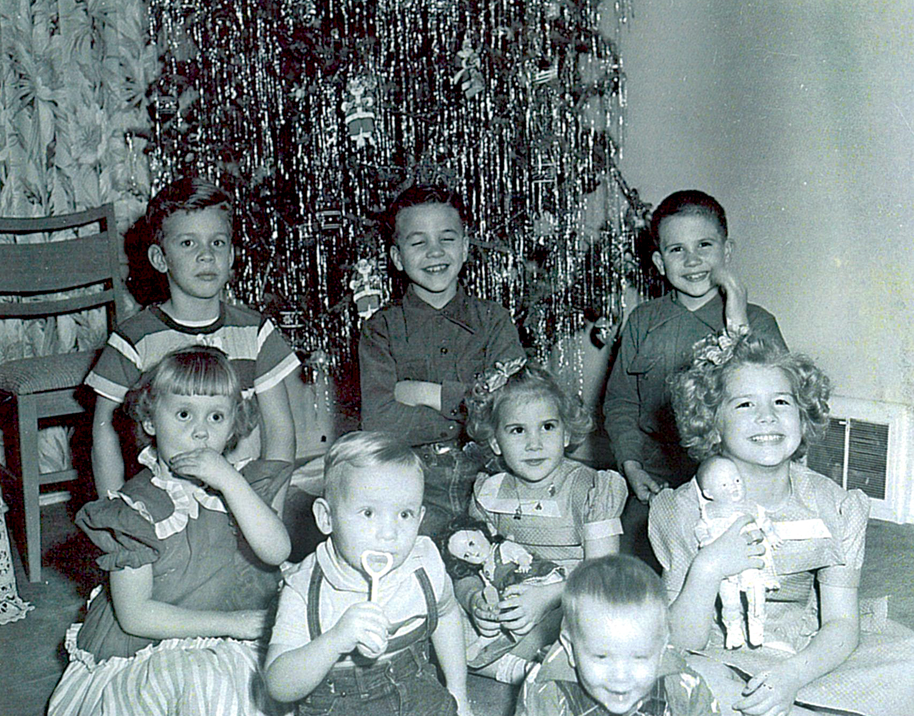 Back Row - Norm, Vard, Nadine, Elaine, Nita, Neal and Nila Front Row - Nanette, Ned, Nalin, and Natalie 1962