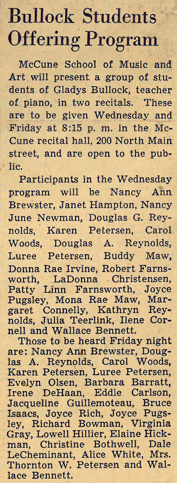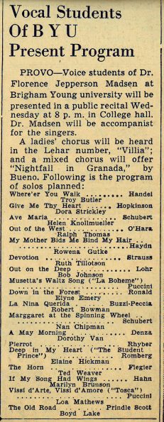1941 Song Recital BYU - Elaine Hickman