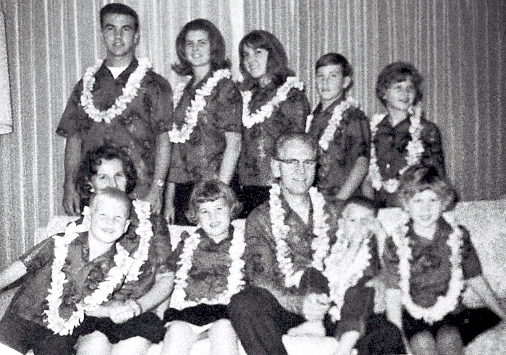 Maxfield Family 1978 - Back Row - Natalie, Nalin, Vard, Elaine, Nanette Ned and Norm Front Row - Nita, Nelden, Neal Nila and Nadine