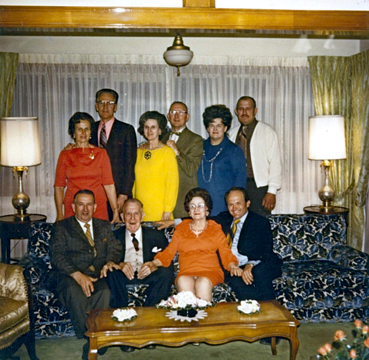 Front Row โ Bill Stewart, Jay Nixon IV, Harold Jr. Reed Nixon, DeVirl Nixon, Jack Nixon, Richard Nixon James and Effie 50th Anniversary - Written on Back of Photo - Grandpa Nixon's B'day and Golden Wedding Anniversary - Sept 7th 1938 - Erma's Rec