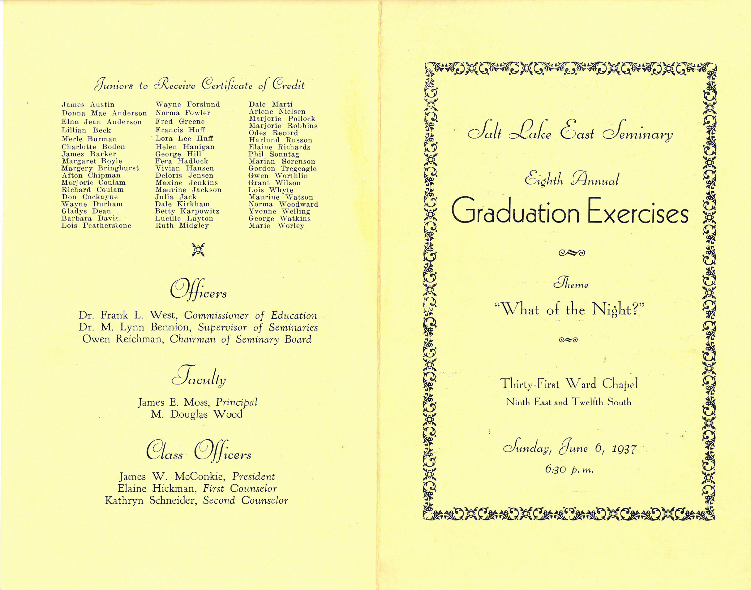 Elaine Hickman Seminary Graduation program 1937