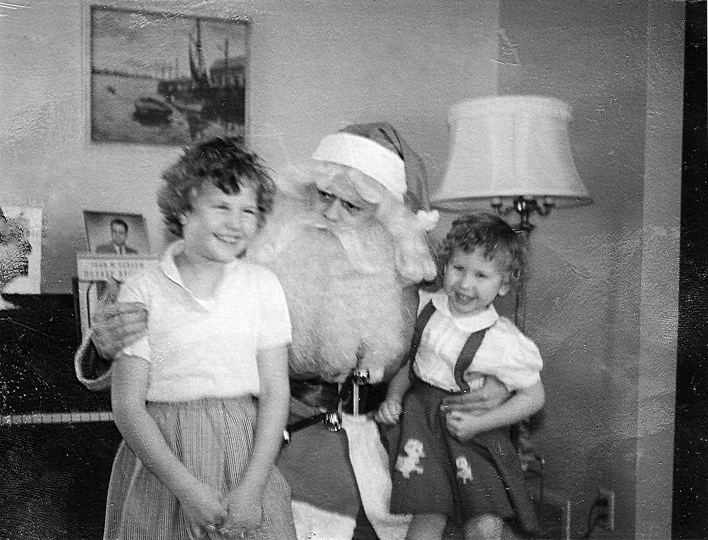 Sitting on Santa's Knee December 1962 - Nila, Lefty Bennett (Santa), Natalie