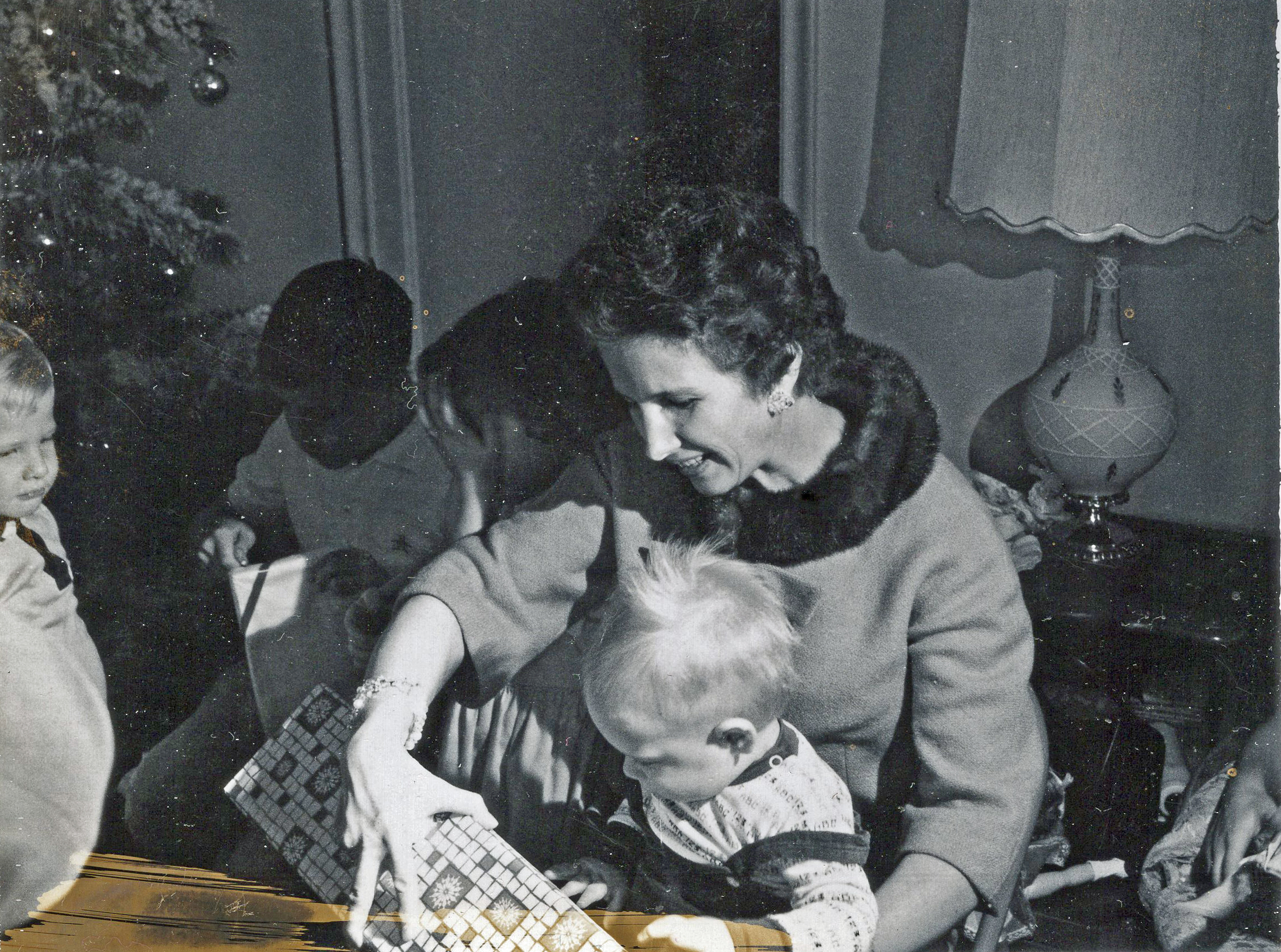 Elaine holding Nalin, Christmas 1962