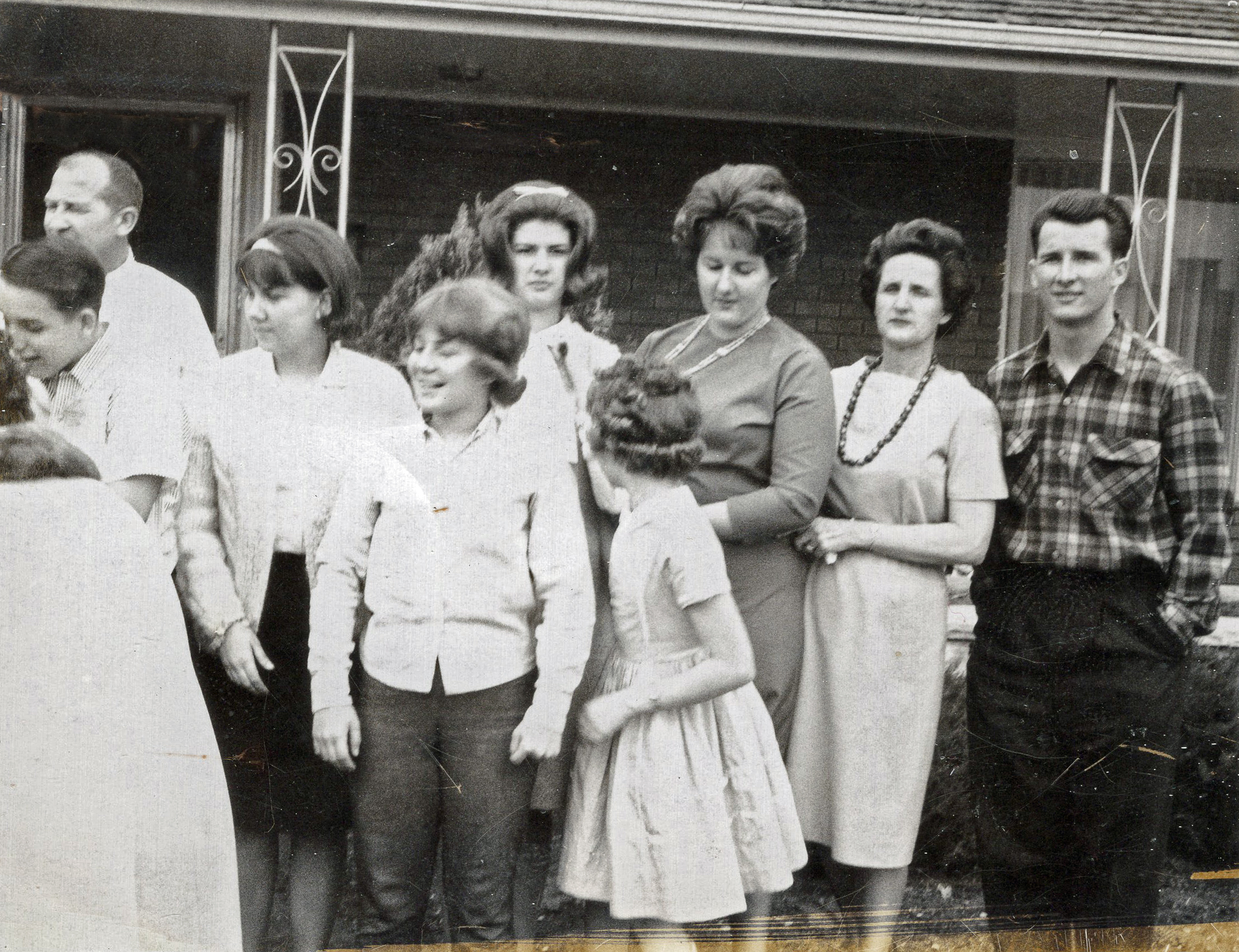 Family - Outside Maxfields Home - 1962 - Elaine, Lucky, Wilford, Nita, Kristine, Nadine, Nila, Gloria, Erma, and Gilbert